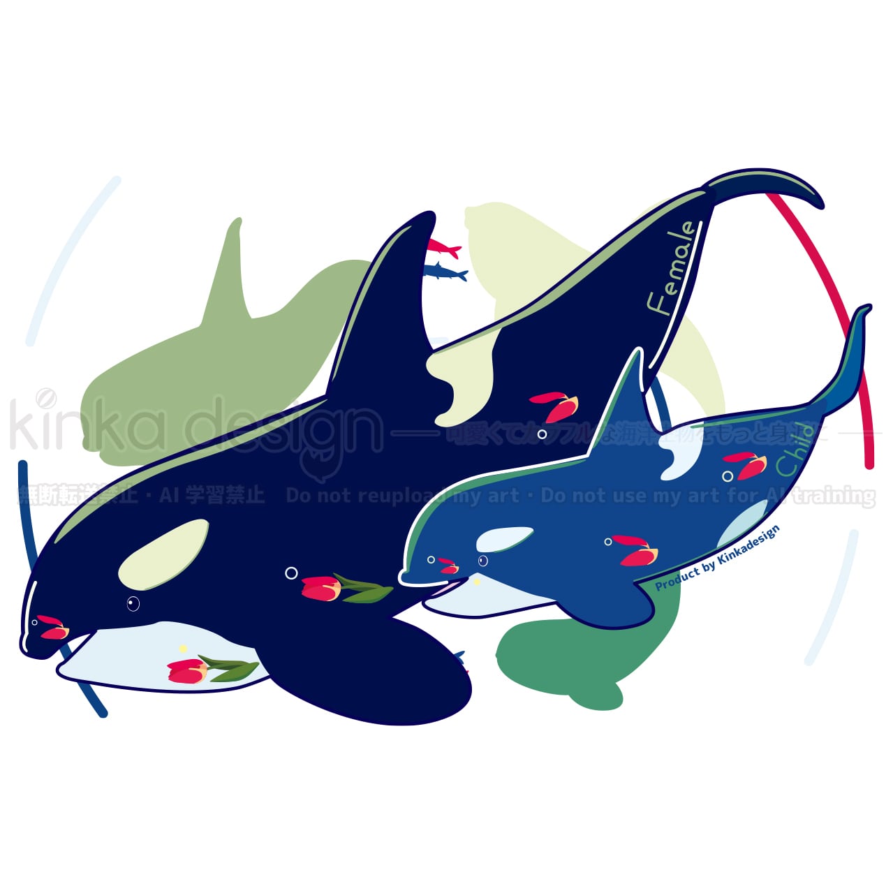 そして今回は、1枚のステッカーに親子のシャチを描きました。