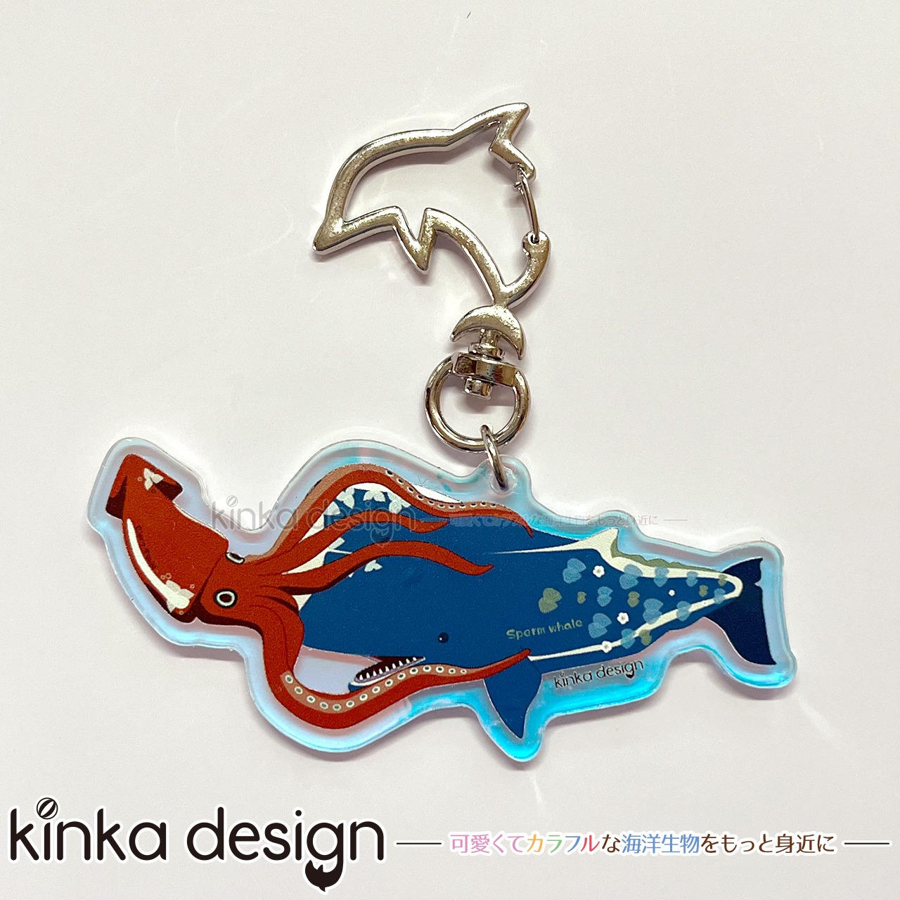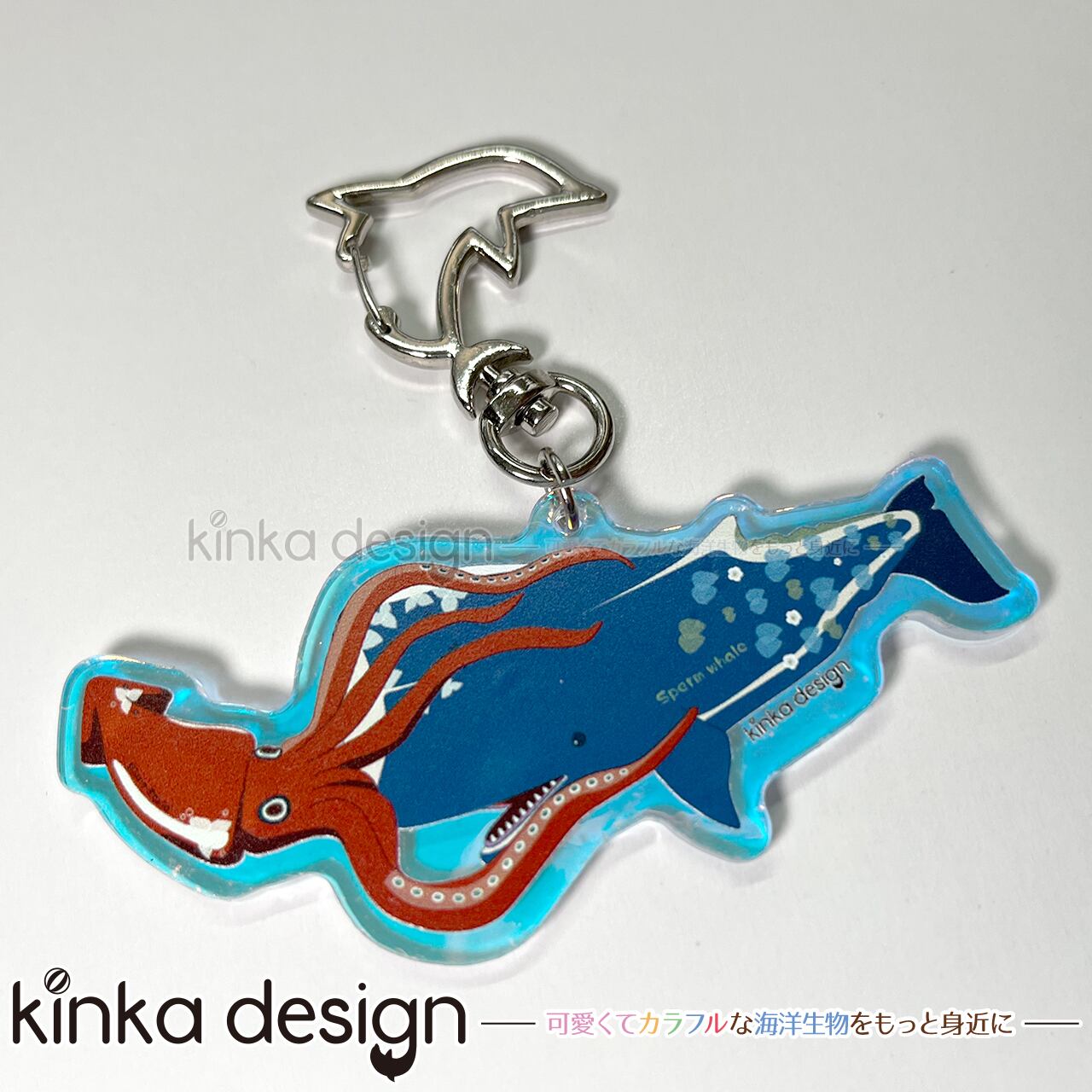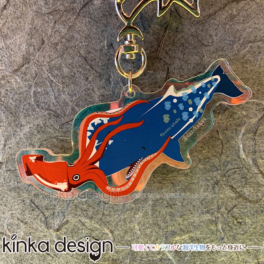 タマムシアクリルキーホルダー マッコウクジラVSダイオウイカ(スクエアカード付)